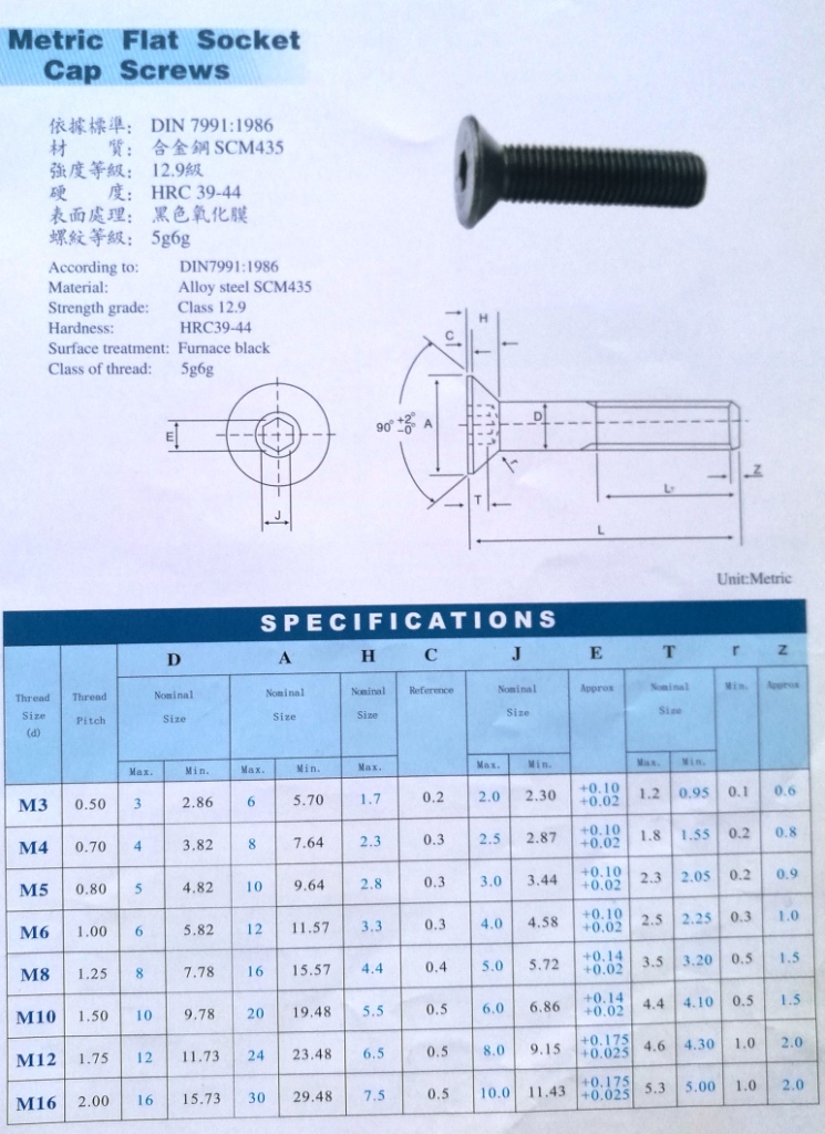 10.9級沉頭內(nèi)六角螺釘 DIN7991