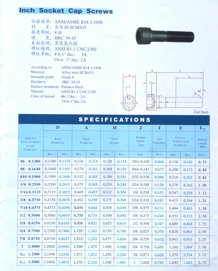 英、美制半圓頭內(nèi)六角螺釘
